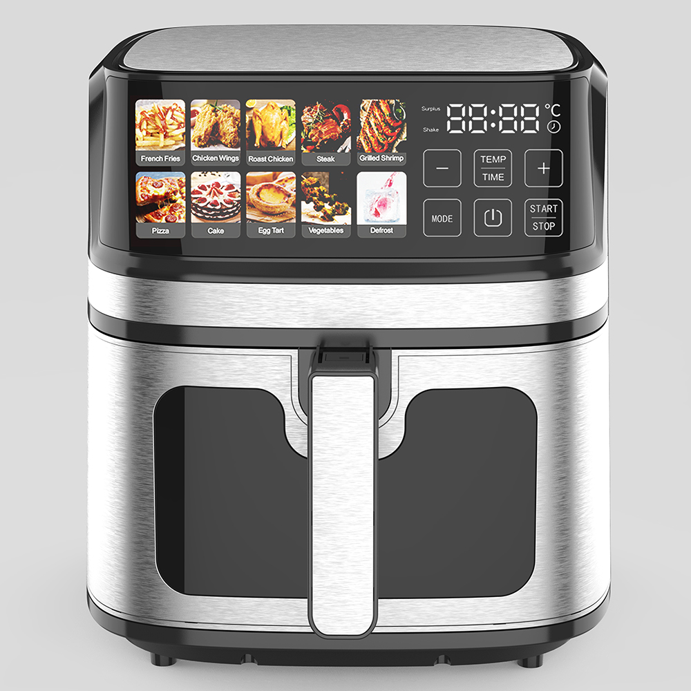 Friteuse à air numérique multifonctionnelle sans huile à écran tactile LCD couleur personnalisée pour la maison 8L 9L en acier inoxydable